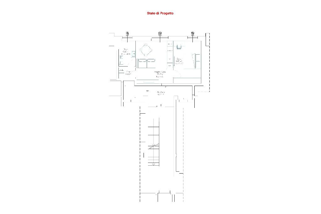 Il progetto prevede la ristrutturazione completa con una nuova suddivisione degli spazi utile a ricavare un bilocale di 50 mq, composto di: ingresso nella zona giorno con cucina a vista, camera matrimoniale, disimpegno utilizzato come lavanderia e servizio principale finestrato.