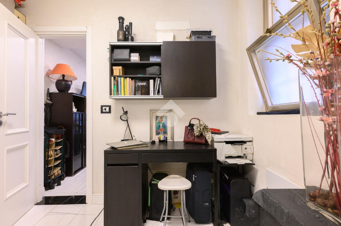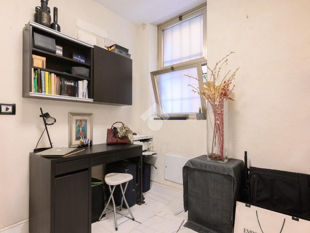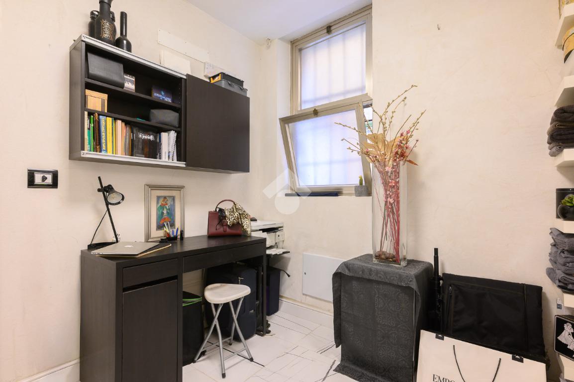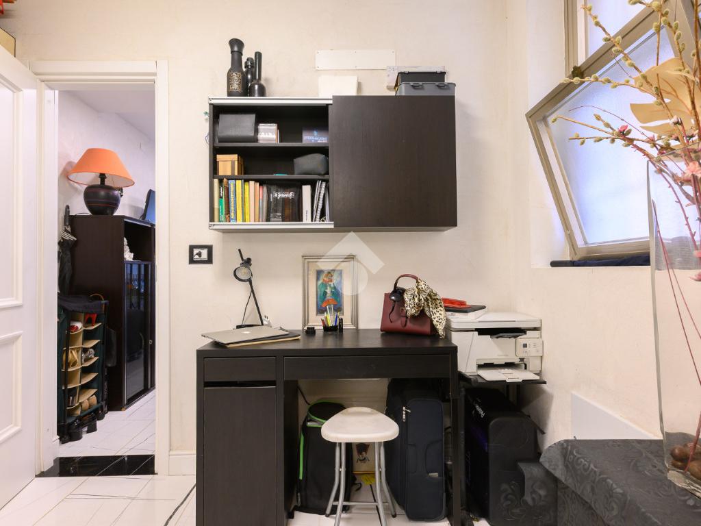 Il guardaroba centrale, attualmente utilizzato come studio, separa la zona principale dal bagno finestrato.