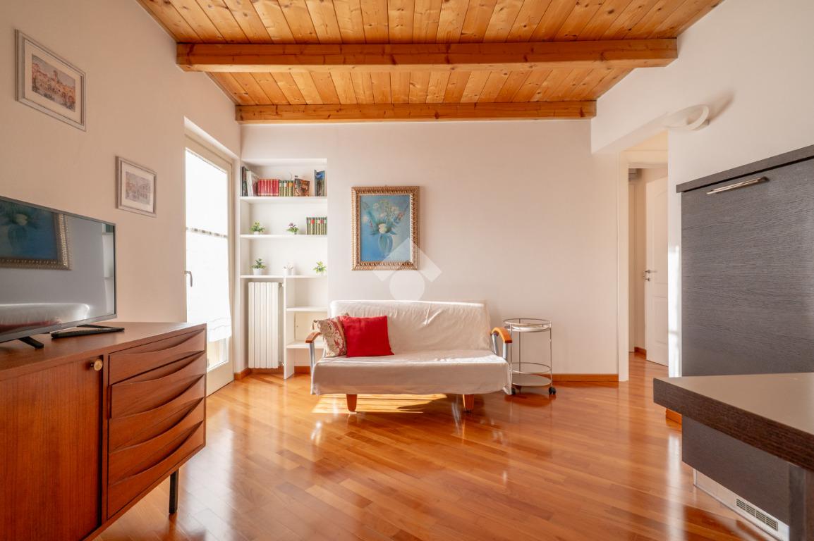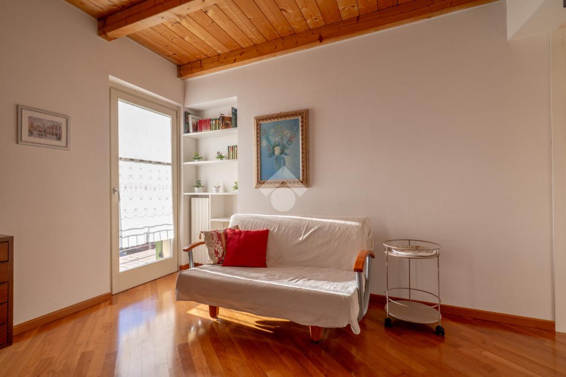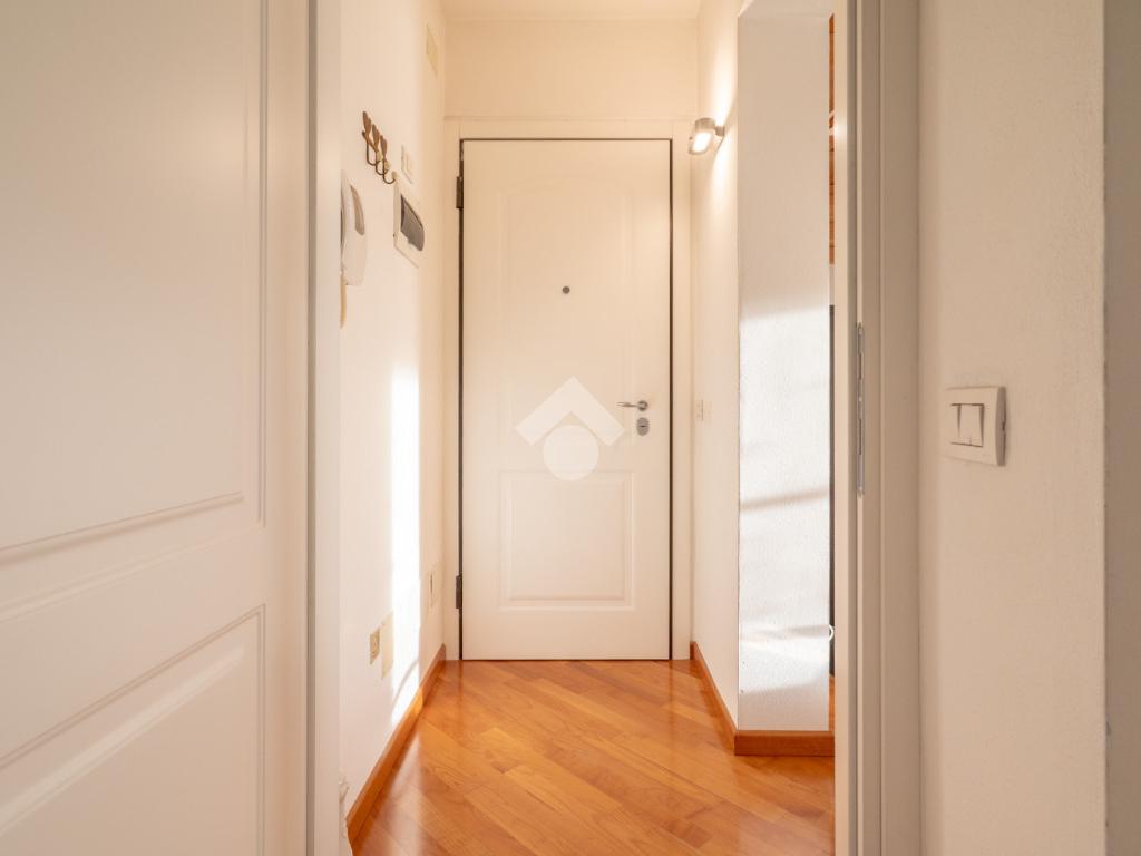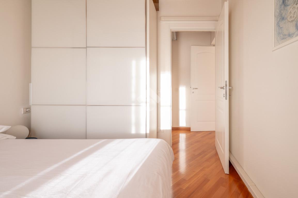Il disimpegno centrale conduce al bagno principale e alla camera da letto, anch’essa con accesso diretto al terrazzo. La soluzione, inoltre è dotata di un ripostiglio esterno, utile come deposito.